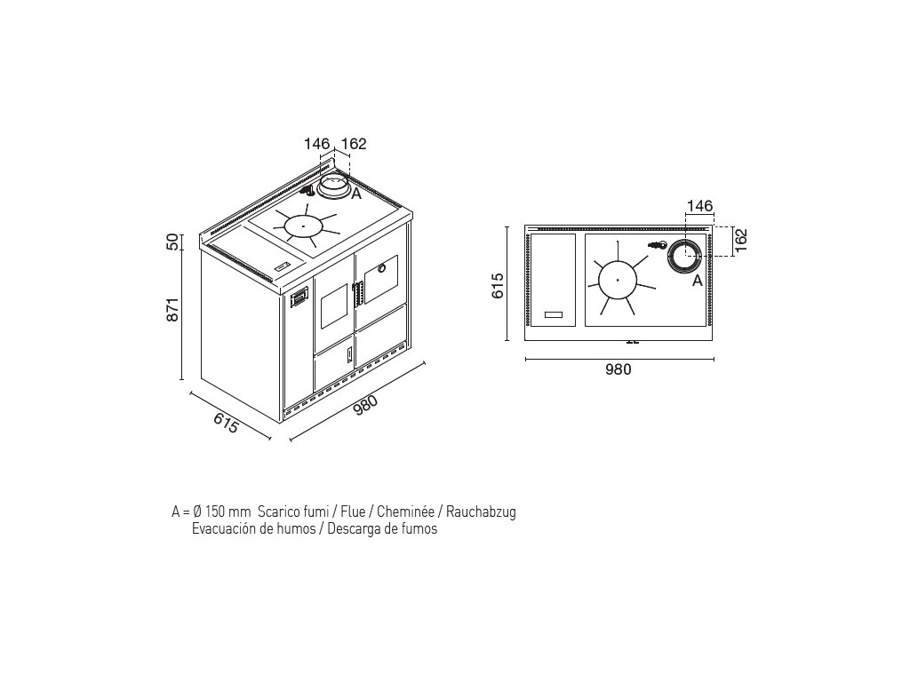 Technický obrázek sporáku Wanda: