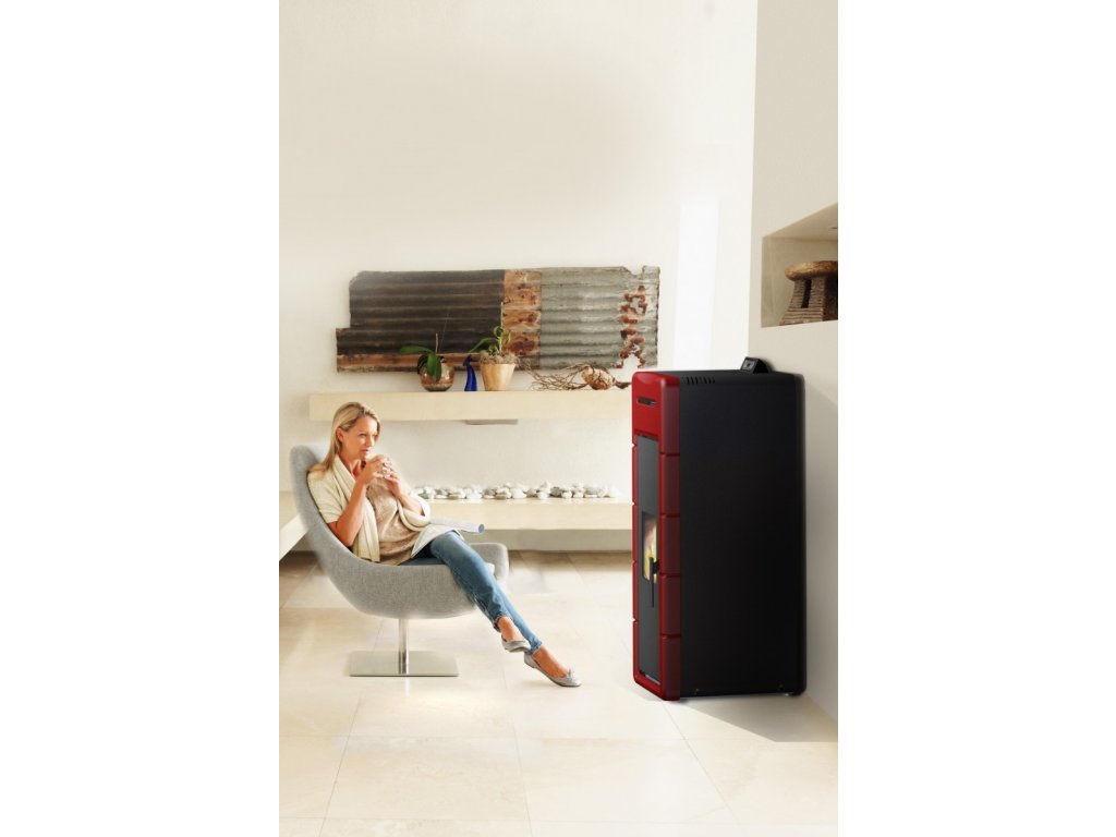 Peletová kamna Kalor se vyznačuji velmi krásným podmanivým italským designem a přívětivým ovládacím displejem s možností týdenního programu.