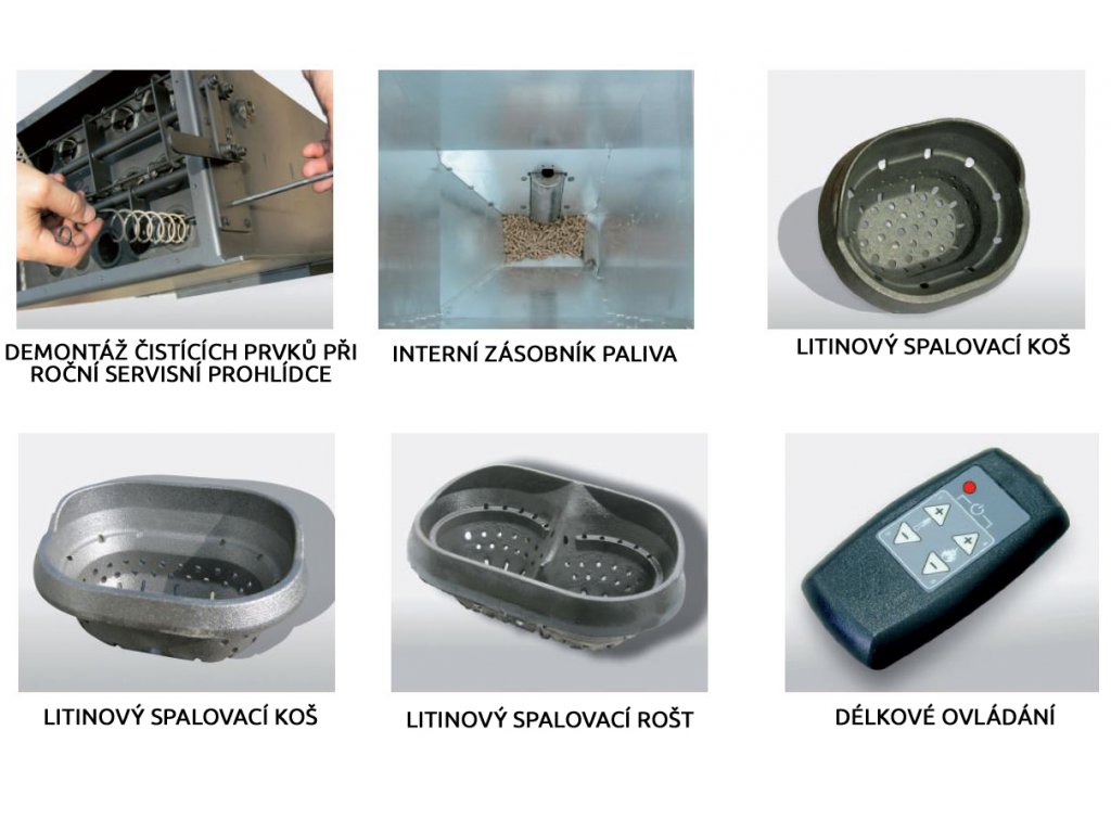 Veškeré provozní komponenty potřebné ke komfortnímu vytápění již součástí peletových kamen: