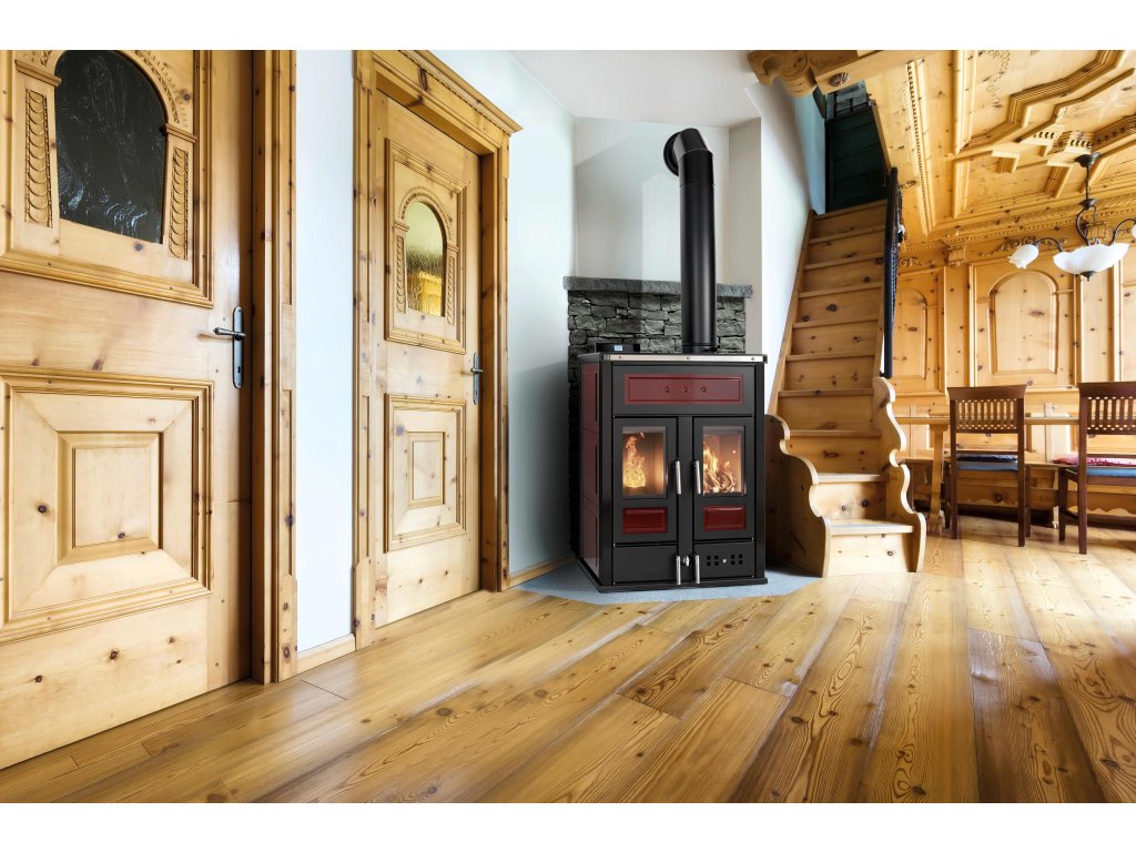 K dispozici jsou dvě samostatné spalovací komory – jedna na dřevo, druhá na pelety, které lze provozovat nezávisle nebo současně. Pelety se mohou automaticky zapálit po dohoření dřeva. V případě náhlého výpadku proudu se peletová strana automaticky vypne, zatímco polenová strana kotle bude chráněna bezpečnostním systémem „SICURO top“. -
