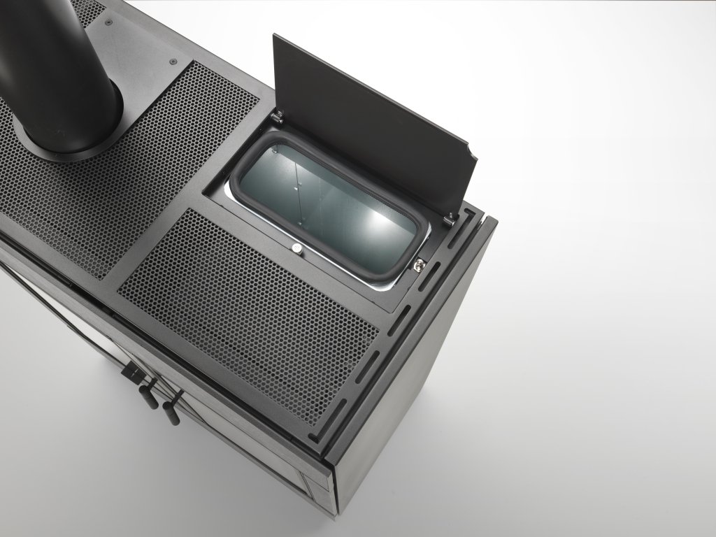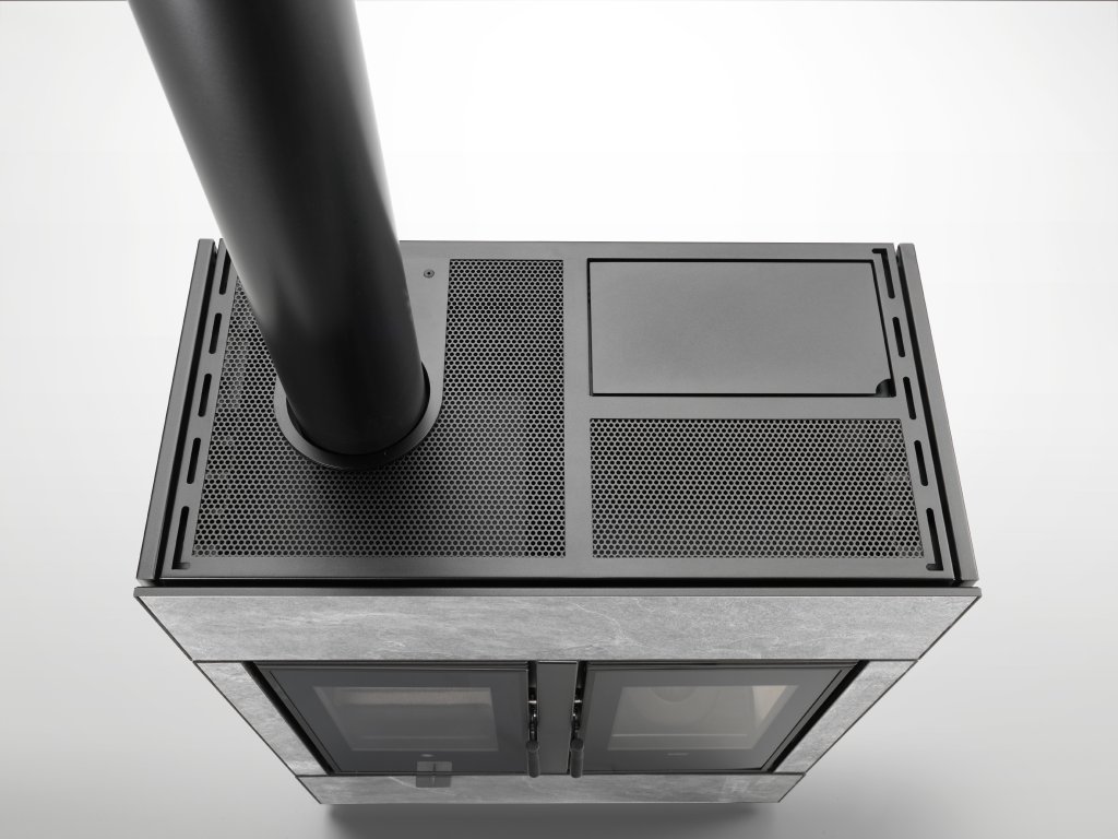 - Volitelný horní odvod spalin – flexibilní instalace - Díky možnosti připojit kouřovod shora získáte maximální volnost při instalaci kamen. Aura 80 se snadno přizpůsobí různým dispozicím místnosti a typům komínů, aniž by byla ohrožena účinnost či design. Praktické řešení pro pohodlnou a čistou instalaci.