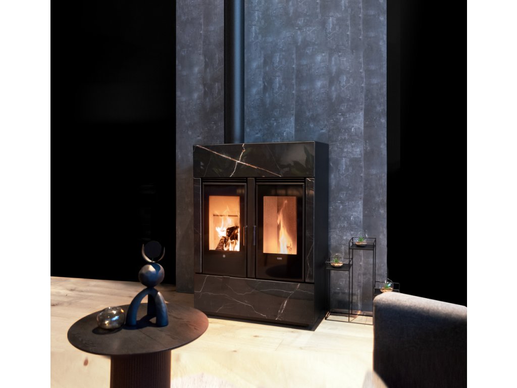 Peletová kamna DUAL AIR jsou perfektní kombinací pokročilé technologie a moderního designu. Díky patentovanému samočisticímu roštu a inovativnímu systému Pellet Cruise Control poskytují tato kamna mimořádně efektivní a uživatelsky přívětivé řešení vytápění. Přirozená konvekce, podporovaná dvojitými sinusoidními litinovými výměníky tepla, zajišťuje obzvláště rovnoměrné a příjemné rozložení tepla v celé místnosti. Snadno vytápí velkou plochu a zaručuje stálé a příjemné teplo. Jejich tichý provoz vám umožní vychutnat si klidnou atmosféru.