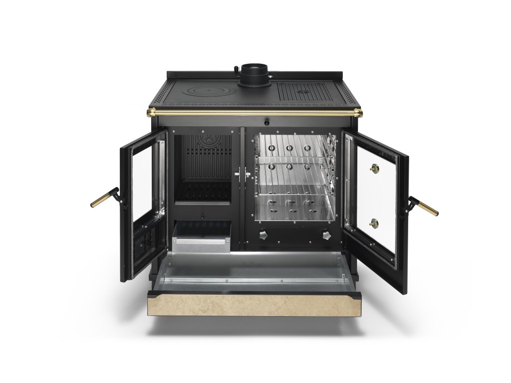Dřevěná kamna Star 90 se vyznačují patentovanou funkcí reverzibilního grilu z mastku potravinářské kvality. Umožňují vám vychutnat si šťavnaté grilované pokrmy přímo z kuchyně a dodávají vašim jídlům gastronomický rozměr.