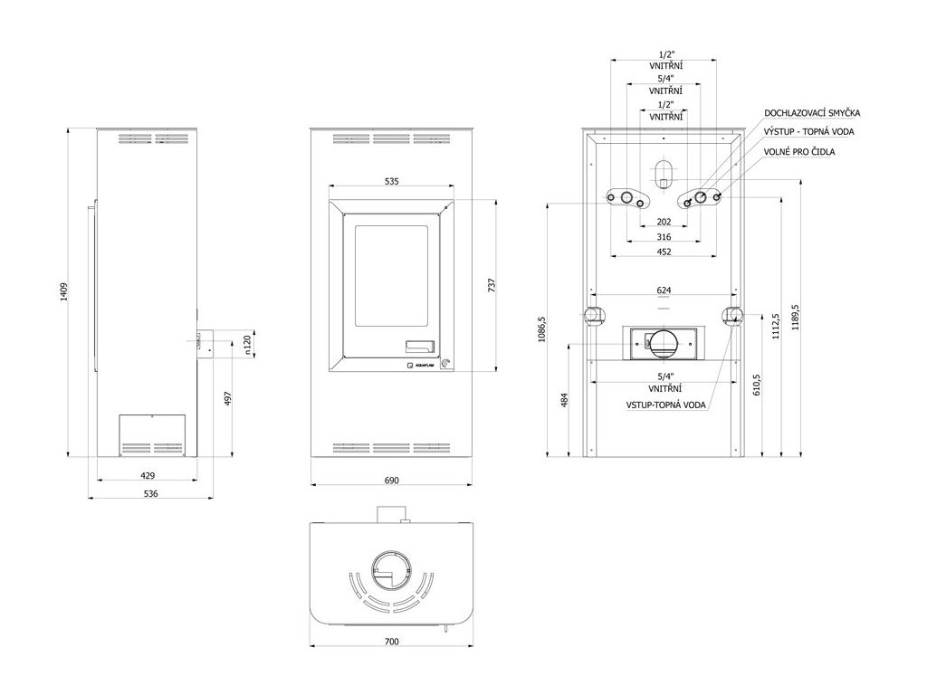 | Typ kamen: | teplovodní - dvouplášťová, konvekční |