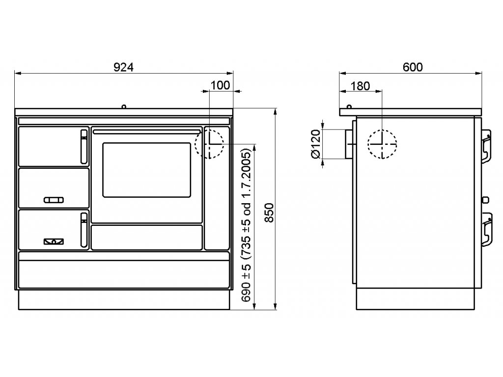 Varianta sporáku LEVÝ/PRAVÝ se určuje podle vývodu kouřovodu z čelního pohledu.Levý najdete zde: KVS Moravia VSP 9100.4482 levý