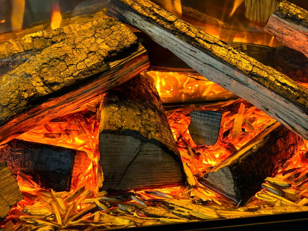 - Reálný vzhled ohně – autentický efekt plamene umocněný skutečným dřevem, které je uvnitř krbu
