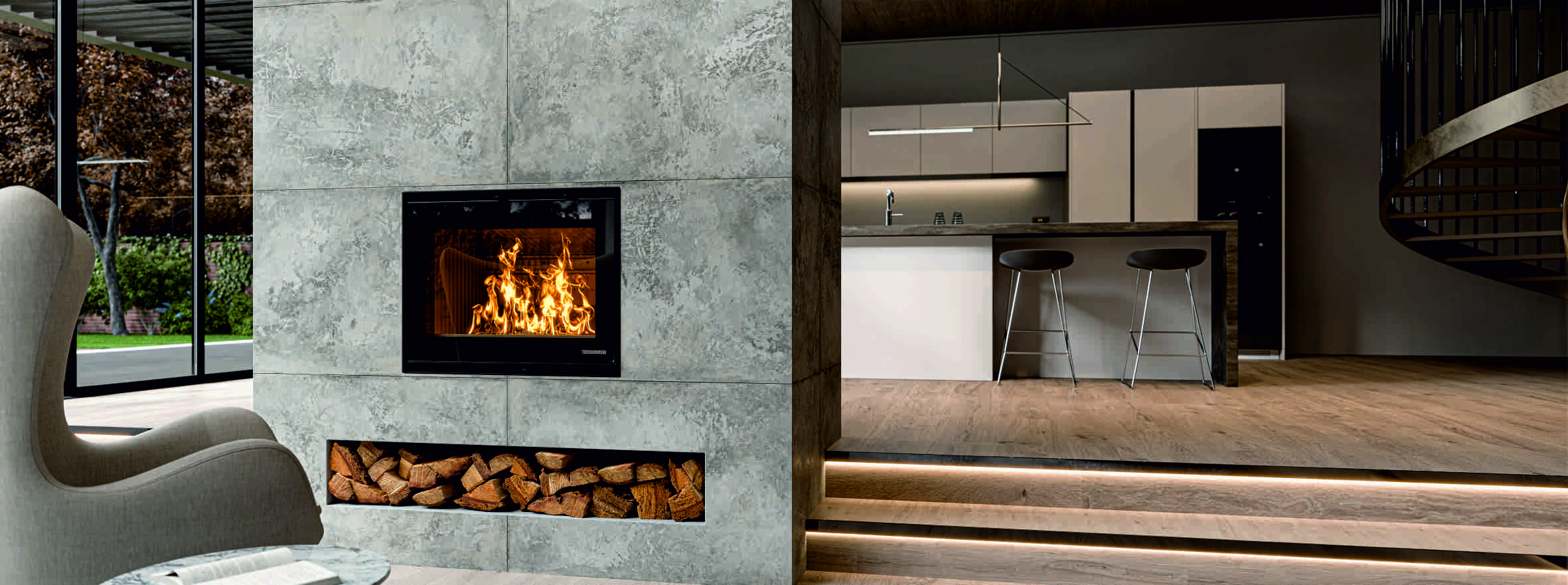 Dřevěná vložka THERMOROSSI SKYLINE 540 s přírodní konvekcí s technologií Fullscreen pro maximálním výhledem do ohně, ideální pro restaurování starých otevřených krbů nebo výstavbu nových. Vložka je s výkonem 10,7 - 7,9 - 5,7 kW.